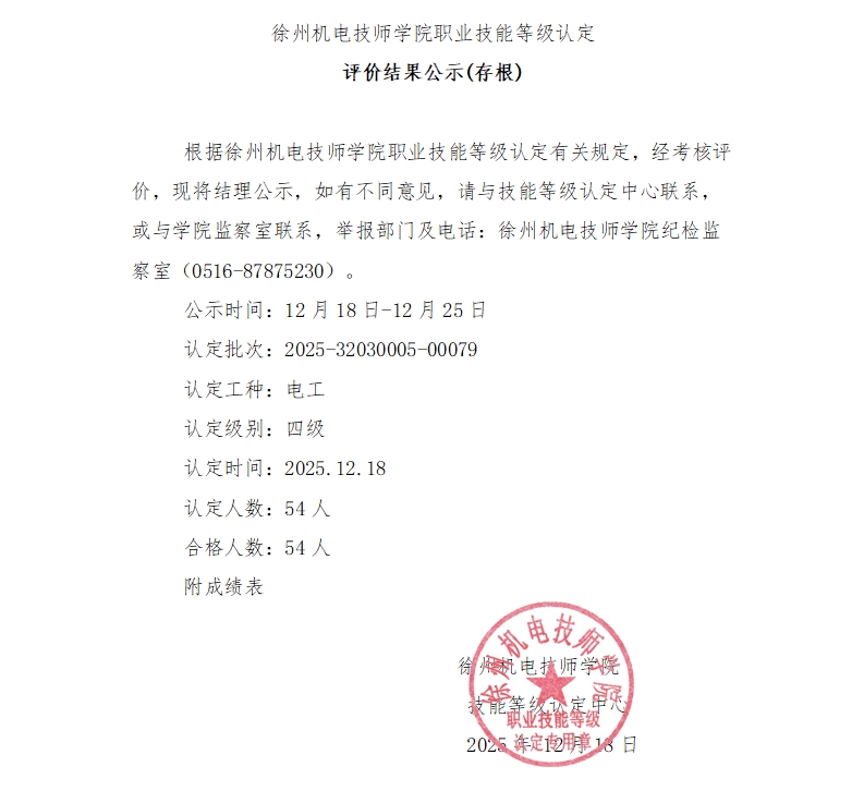 【下一篇】徐州机电技师学院技能等级认定80批次结果公示