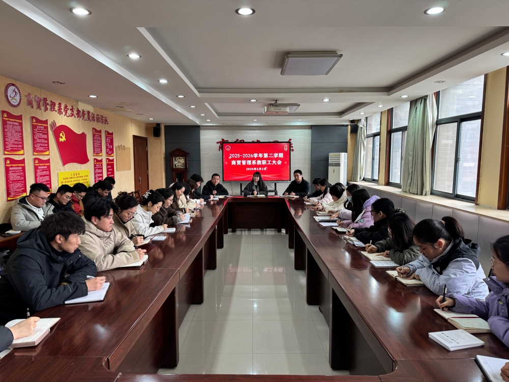 3月2日,商贸管理系召开新学期全体教职工大会,总结回顾2025年工作,系统布置和安排2026年系部重点任务。全系教职工齐聚一堂,以昂扬斗志共同开启新一年高质量发展新征程。会议深入贯彻落实学院新学期会议精神,强调···