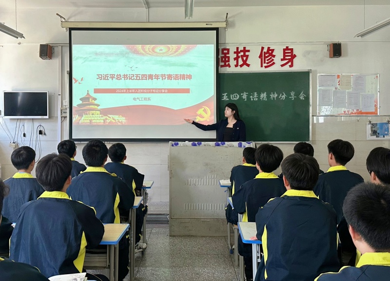 为深入学习领会习近平总书记五四青年节寄语精神,电气工程系2024年度上半年入团积极分子在系部团总支书记丁雨晴的带领下开展集中学习活动。会议伊始,丁老师播放视频,带领同学们回顾五四青年节的由来,大家围绕“坚···