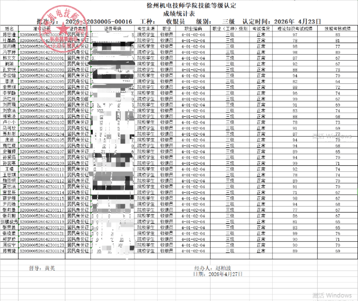 徐州机电技师学院技能等级认定2026-16批次成绩